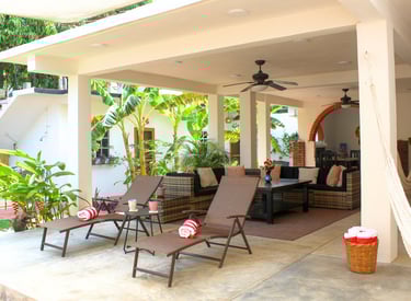 Disfruta de la piscina privada, las hamacas y la exuberante vegetación a solo minutos de la playa y el mercado.